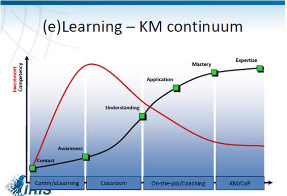 Pues bien, este planteamiento anterior lo pude ver aplicado, con mucho sentido común en la región de Murcia a través de su Escuela de Administración Pública. La diferencia con el programa Compartim radica en el incentivo económico a los e-moderadores. Pero como yo digo, siempre que explico el programa, cada organización ha de saber buscar su propio camino. Paco Martínez y Murcia están en ello.( Y quizás se no han adelantado en esta época de crisis) De todas maneras, el propio Wenger lo puntualiza en una entrevista reciente: algo habrá que pagar a aquellos que asumen el trabajo extra: convocar reuniones, codificar el conocimiento, repositarlo, etc. Debajo os dejo un gráfico de Crhistian de Neef que compara costos entre el e-learning y las CoPs.