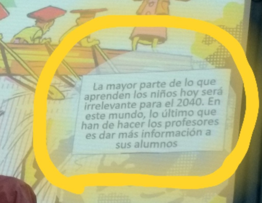 - El problema no es esta tontería concreta ( lo que se dice en la viñeta), el problema es que hay un montón de gurús new age dedicándose a la formación de formadores y promoviendo discursos en contra de los libros y en contra del conocimiento.