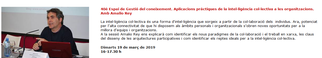 • Desarrollo de nuevas estructuras/dispositivos sociales: redes de aprendizaje compartido,  nuevas prácticas de colaboración y aprendizaje, proliferación de  comunidades de prácticas y, en la base, el aprovechamiento de la inteligencia colectiva (como desde hace tanto defiende Amalio Rey, el cual, por  cierto, lo tendremos en el CEJFE el próximo   19 de marzo en una sesión abierta hablando de inteligencia colectiva.