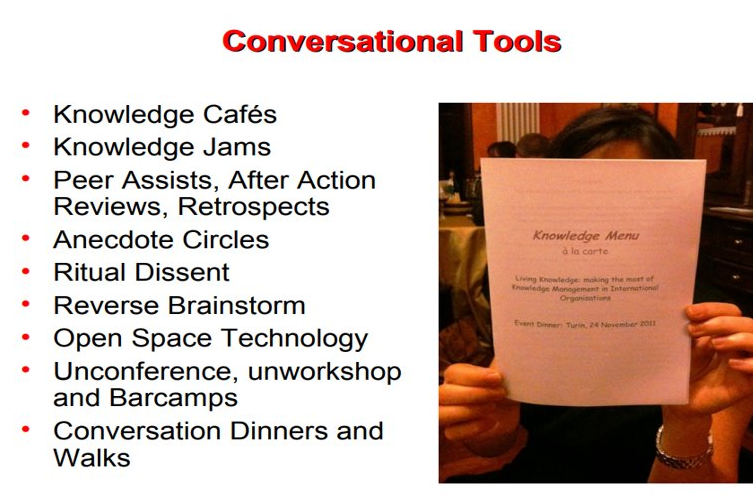 David Gurteen, un  par de  años antes, en el Congreso EDO 16,  mostraba todo lo que es capaz  la conversación como   herramienta  de transformación: