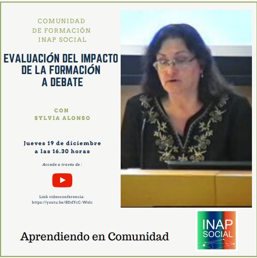 El próximo jueves 19 de diciembre, a las 4 ‘30 de la tarde tendremos la tercera sesión de Aprender en Comunidad. Estará a cargo de Silvia Alonso y nos hablará de los Límites y las posibilidades de la evaluación de transferencia y de impacto , en la época del descrédito de la formación tradicional, aquella a la que se ha asociado la evaluación según el modelo de Kilpatrick.