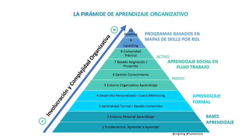 Virginio Gallardo es un clásico de este espacio. En esta ocasión nos regala dos magníficos posts en los que actualiza lo que se entiende hoy por aprendizaje en las organizaciones. En la segunda entrada profundiza en lo que creemos es la competencia nuclear actual en las organizaciones: aprender a aprender. Su pirámide del aprendizaje es muy buena.
