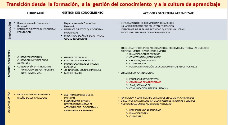 Ya, en este post, voy a desarrollar una acción específica, que se situaría en la Cultura de Aprendizaje, y que se conoce como Campañas de Aprendizaje