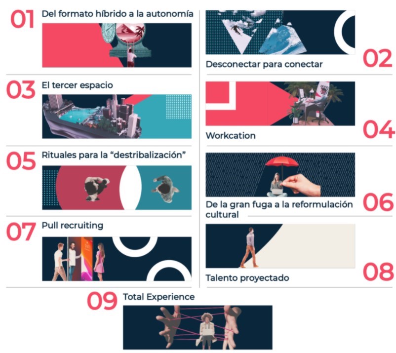 2021 ha sido un año de transición en el que algunas de las tendencias de 2020 se han asentado y otras han ido desapareciendo. 2022 será el momento en el que veremos si lo que intuimos viene para quedarse o si las organizaciones prefieren volver a las reglas de juego pre-pandemia. En nuestra opinión, nos encontramos ante una inmensa oportunidad para avanzar y evolucionar hacia una mejora en la gestión del talento. Tal y como queremos reflejar en este informe, no solo ha cambiado el cuándo y el dónde se trabaja, sino también el cómo y el porqué, y esto ya no depende tanto de las empresas como de las personas que forman parte de ellas.